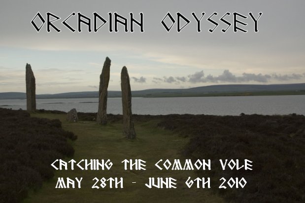 I checked the traps even before a cup of tea first thing but nothing had been caught and now with only three night left I was getting concerned that I would not catch a vole. After a cup of tea we got the taxi to the garage and picked the hire car so we were mobile again and spent most of the day catching up on the touristy things before popping back to our accommodation for a late lunch. I checked the traps while lunch was being prepared the fourth trap was tripped, it was occupied but I had to get back to the accommodation where the equipment was before I was certain. Indeed it was an Orkney vole. I let it feed in the tank during lunch then we took it back for a few photos before release. The rest of the day was touristy but we did have a cracking male hen harrier over the road on the way back to the accommodation. We popped to Stromness for food and noticed a large corvid roost behind the co-op which was quite impressive as we were incredibly close to them.