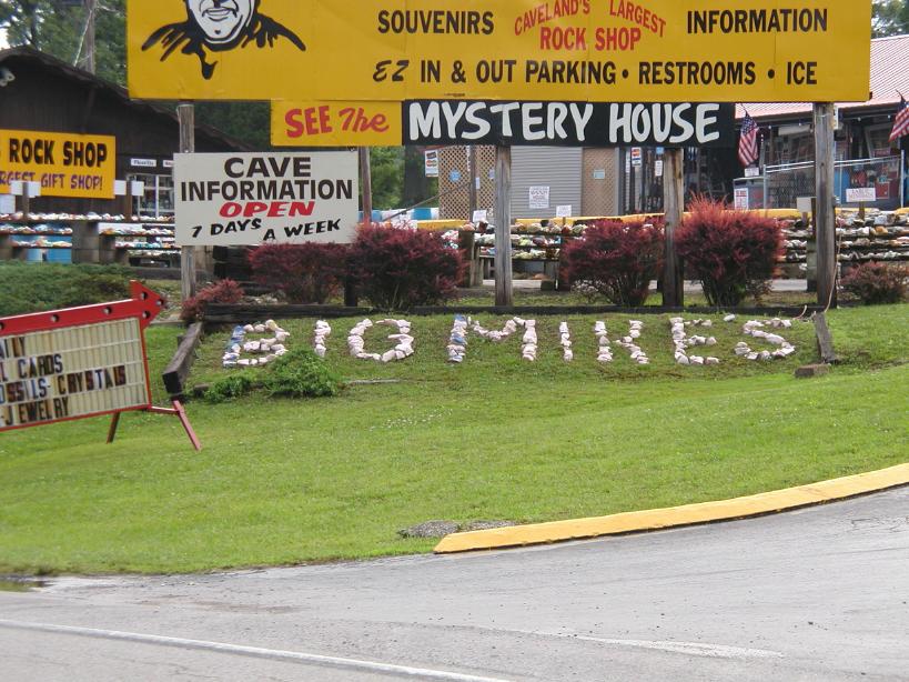 On the edge of Mammoth Cove National Park, Kentucky advertising Big Mikes Shop.