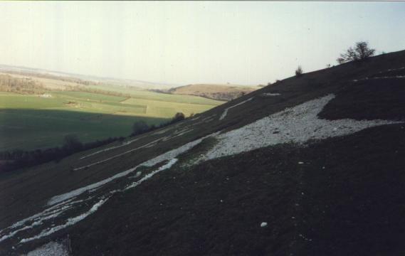Nine regimental military badges constructed by military forces stationed locally between 1914 and 1918. The first one constructed was No 3 in 1916. They are constructed on the steep slope of Fovant Down covering a vast area of approx. 4000 m2. The first badge is credited to the London Rifle Brigade after returning from the western front. They are in good condition, although in need of annual maintenance.