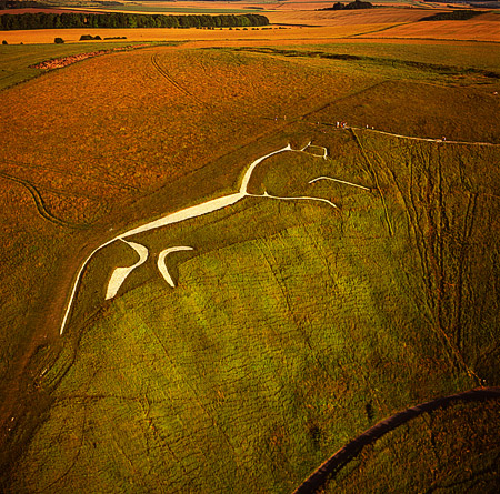 Also unusual is the fact that the horse faces to the right while all other horses and other animal hill figures face left, with three exceptions, the very first Westbury horse, the Osmington horse and the more modern Bulford Kiwi. The earliest record of the white horse is from Abingdon Abbey in the late 12th century, although white horse hill was mentioned a century earlier. There are many records after this period with a very good historical record from the 18th century in which the horse has changed little in appearance from then to the present day. There were occasions when the horse became overgrown, 1880 for example and was in danger of being lost like some of the other hill figures. There is no danger of this happening now, with English Heritage caring for this Ancient monument.