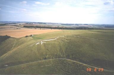 The best view is undoubtedly from the air, but lacking aerial capabilities the best view is from about 1 mile to the North, although the view from Dragon hill is not bad. It is also the largest of the horses being some 374 feet in length and 110 feet in height, constructed of trenches which are 5 to 10 feet in width and 2 to 3 feet deep and filled with chalk, this is a few feet above the natural chalk of the hill. The horse is in excellent condition being maintained by the National Trust. The edges are well defined partially consolidated with concrete (although well hidden) and the top edge reinforced with polypropylene netting, the chalk white and well compacted and erosion repaired when necessary.