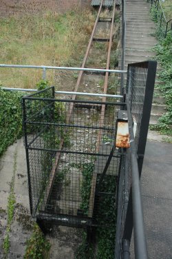A private funicular, in the West Midlands, used for goods transport in a steep garden.