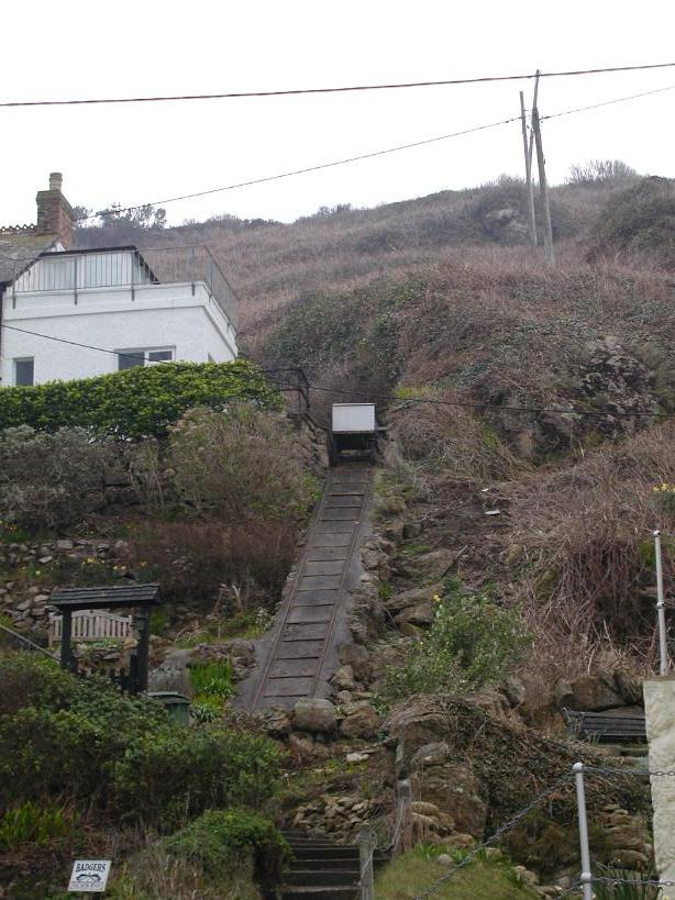 A private funicular, easily spotted in the village of Sennen Cove, Cornwall.